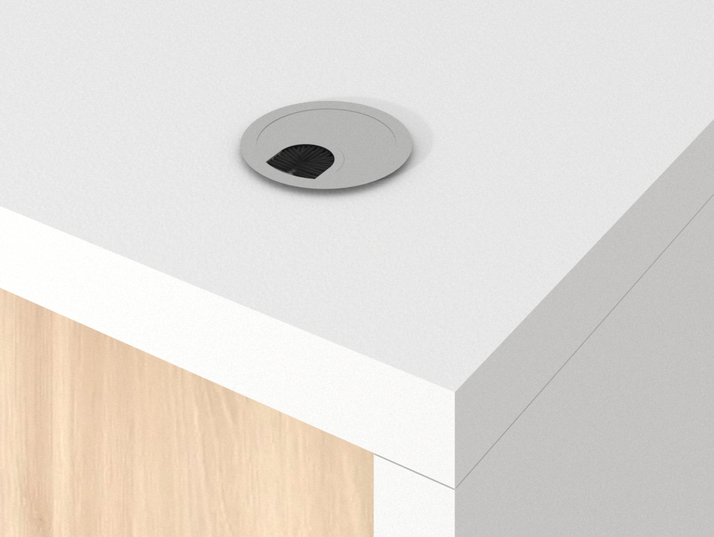 • Integración Técnica Discreta: Incorpora un espacio específico para la bandeja de PC, permitiendo mantener el equipo informático oculto. Además, cuenta con pasacables incorporados en la superficie, esenciales para facilitar la conexión ordenada de monitores y dispositivos, liberando la superficie de trabajo de cables y enredos.