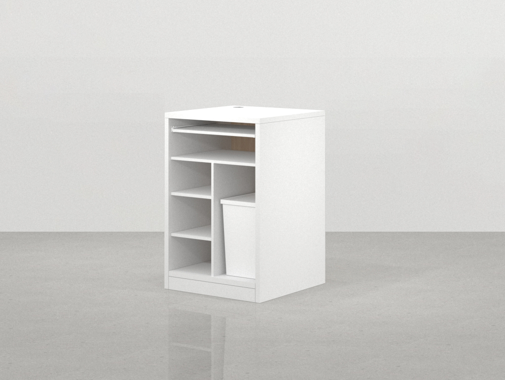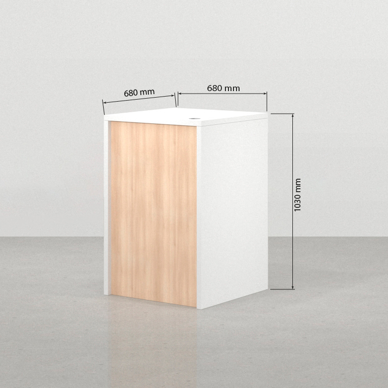 • Carcasa en Melamina Blanca Soft: El cuerpo principal y el sobre están construidos en melamina blanca soft. Este acabado refuerza la luz natural del espacio, proyectando orden y profesionalidad.