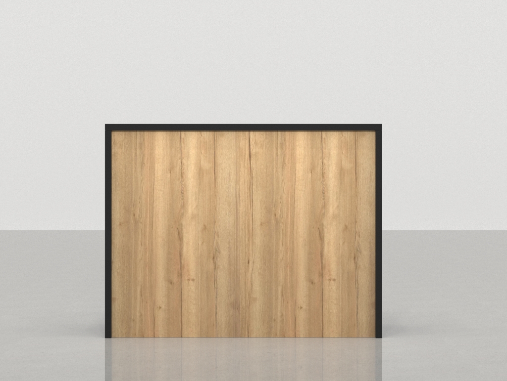 - Frontal en Melamina Roble Halifax Natural: El panel frontal se presenta en el acabado Roble Halifax Natural. Esta melamina de alta calidad reproduce la textura rugosa, las vetas marcadas y la calidez realista del roble. Este toque orgánico equilibra la sobriedad del negro, aportando una sensación de autenticidad y estilo que conecta con el cliente desde el primer momento.
