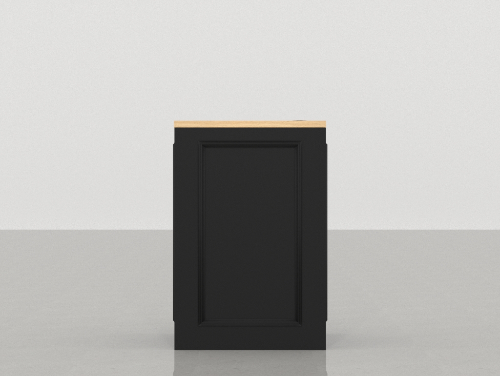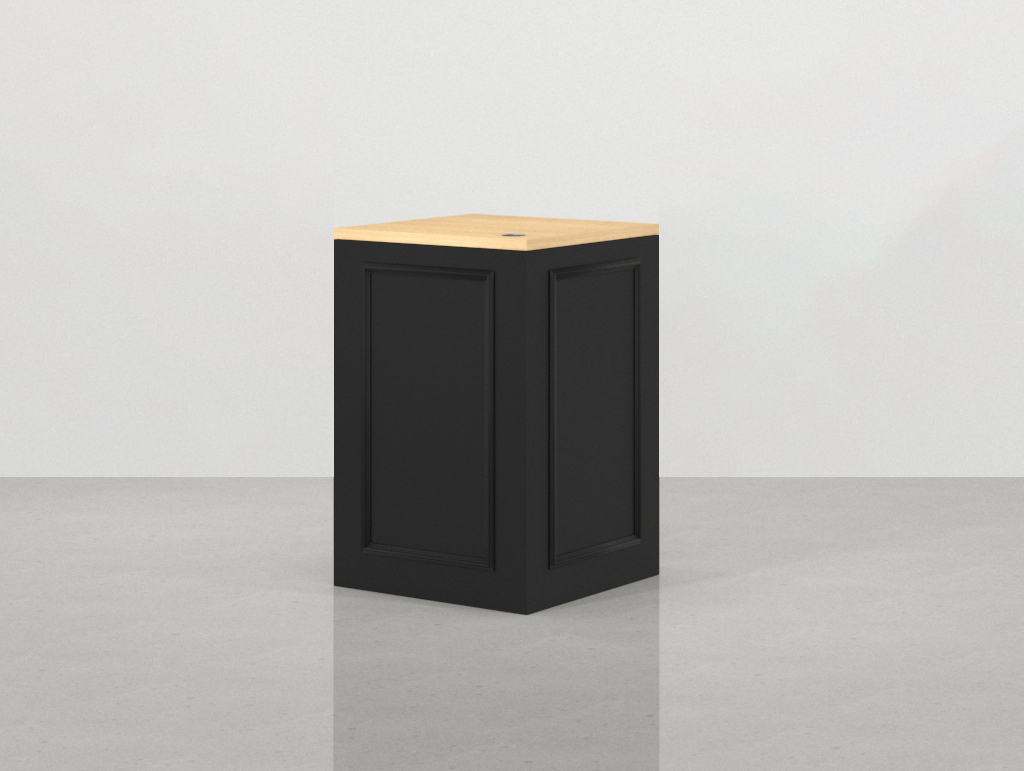 - Sobre de Protección y Punto de Calidez: La superficie de atención al cliente superior (encimera) se remata con un sobre en Roble Vicenza. Esta melamina de alta protección imita a la perfección la calidez, el veteado y la textura de la madera clara. El contraste creado entre la intensidad del negro lacado y la luminosidad del Roble Vicenza es visualmente rico y sofisticado, elevando el mueble de caja a un elemento central de mostrador de diseño en el retail. Además, este sobre está diseñado específicamente para una durabilidad superior en entornos de uso intensivo, resistiendo líquidos, rayones y golpes.