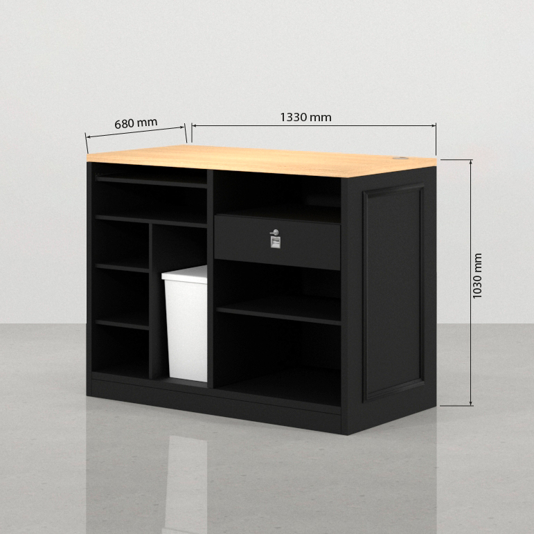 • Crucialmente, incluye un cajón con cerradura. Este cajón de seguridad es indispensable para guardar efectivo, documentos confidenciales, datáfonos y otros artículos de valor, garantizando discreción y seguridad en el punto de venta.