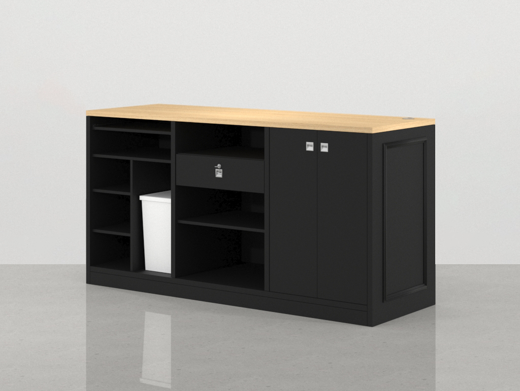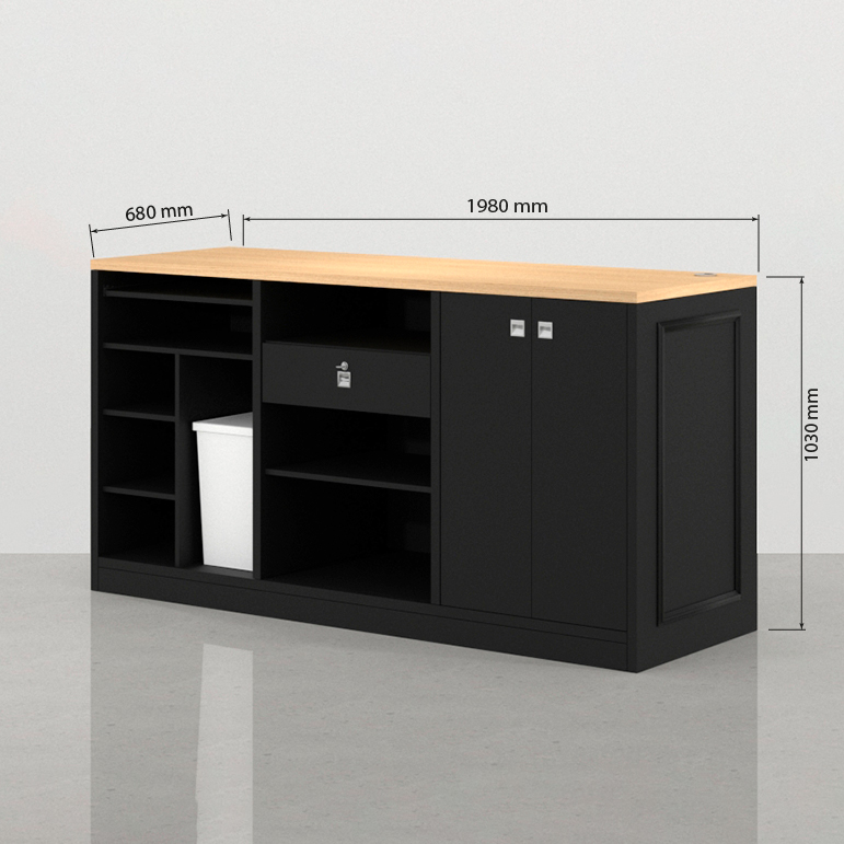 - Crucialmente, incluye un cajón con cerradura. Este cajón de seguridad es esencial para la custodia de efectivo, datáfonos o cualquier artículo de valor con discreción, un aspecto clave de tu mostrador de atención al cliente.